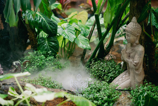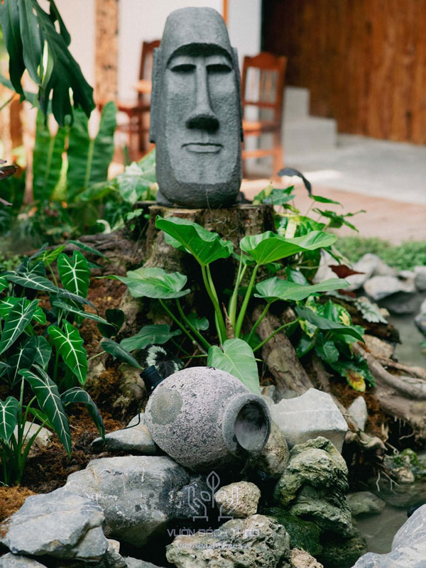 - Sử dụng các loại đá vôi hoặc các bể nước, ao cá, suối nước để tạo nên một không gian mát rượi, thoáng đãng.