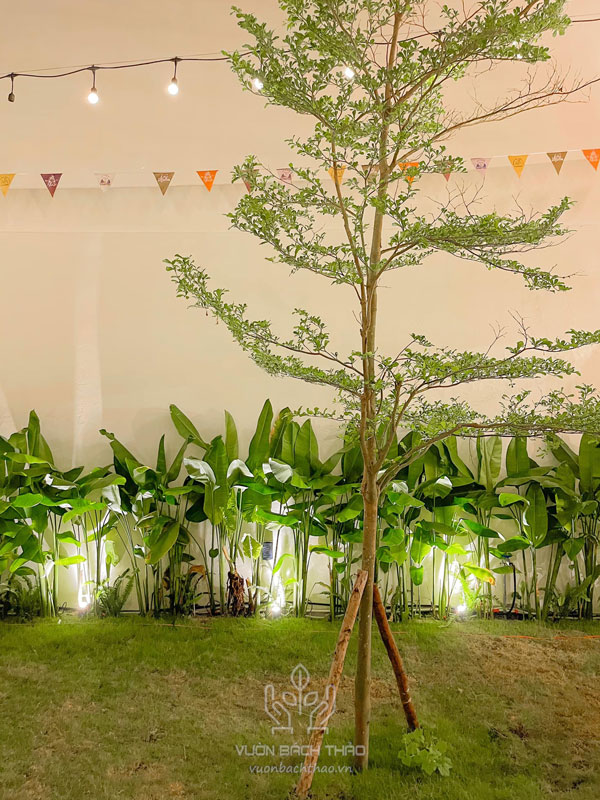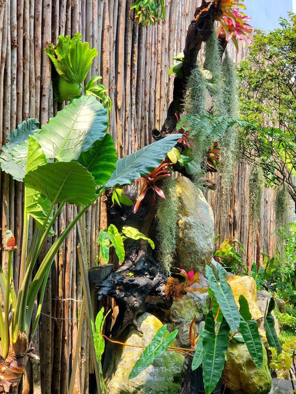 - Sử dụng các loại cây có tán xanh rộng, lá lớn và màu sắc đậm như lá oải hương, lá dứa, trúc phú hộ, cây thư giãn, cây điều hồng…
