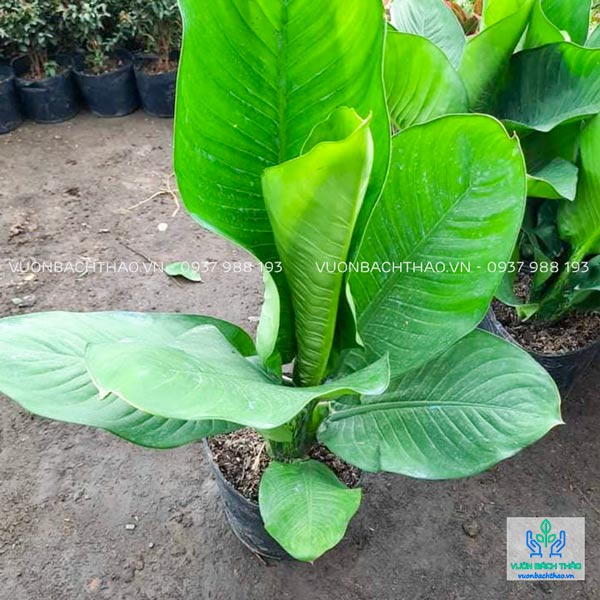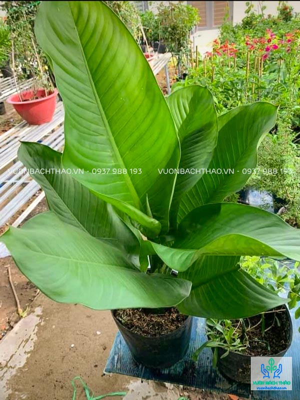 Lá của cây có hình bầu dục với bản to; là bóng có màu xanh mượt, trông rất giống lá chuối. Hoa đại phú gia mọc từ giữa ngọn, có hình trụ dài màu trắng đục.