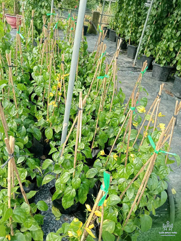 Thân dạng dây leo có thể phát triển tốt ở tất cả mọi khu vực có nhiều ánh sáng thuận lợi; cây mọc nhiều nhánh bò ngang hoặc rũ dài xuống, thân cây màu xanh lục. Lá đơn cuống dài thường mọc từ 2 đến 3 lá một chỗ.