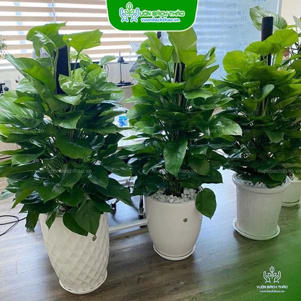- Thanh lọc không khí: Cây Trầu Bà leo cột có nhiều lá, phiến lá rộng nên khả năng lọc khí CO2 rất tốt, khi trồng trong nhà giúp không khí trong lòng hơn, lọc bớt các loại khí bẩn từ thuốc lá và các loại khí độc hại từ thiết bị điện tử.