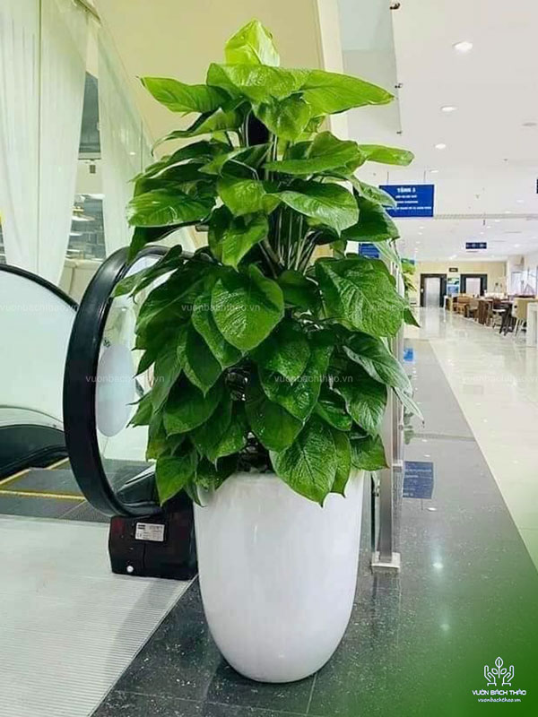 - Đặt trong phòng khách: Cây trầu bà phù hợp để bày trong phòng khách. Màu xanh mướt, bóng mượt của cây Trầu Bà leo cột phối cùng các màu sáng sẽ tạo thành điểm nhấn cho phòng khách.