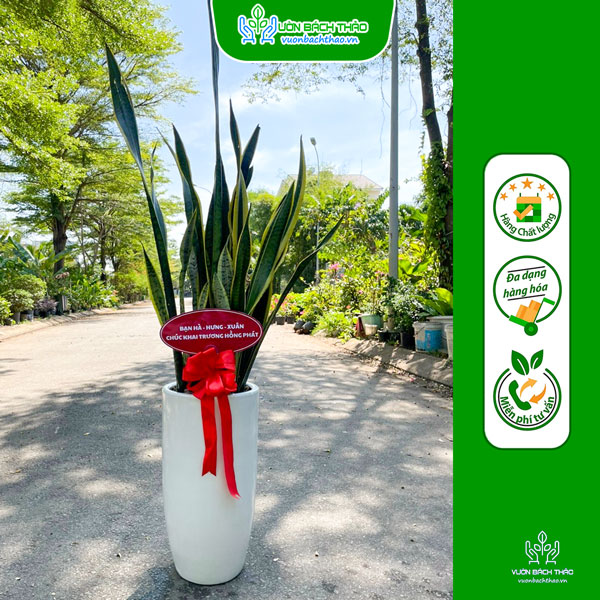 Cây lưỡi hổ tặng khai trương Hàn Quốc đẹp và sang trọng. Cây xua tan tà khí, mang lại vượng khí cho gia chủ. Cây được trang trí theo phong cách quà tặng, bao gồm băng rôn nhập từ Hàn Quốc về Việt Nam. Vườn Bách Thảo bán chậu cây lưỡi hổ khai trương với nhiều mẫu mã đẹp, giá rẻ tại TP. Hồ Chí Minh.