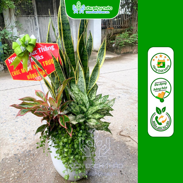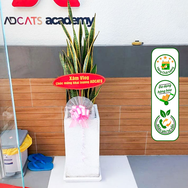 Cây lưỡi hổ tặng khai trương được treo thêm dải băng chúc mừng Kiểu Hàn Quốc hoặc banner chúc mừng theo kiểu Việt vừa đẹp lại tạo thêm sự sang trọng cho cây.