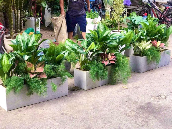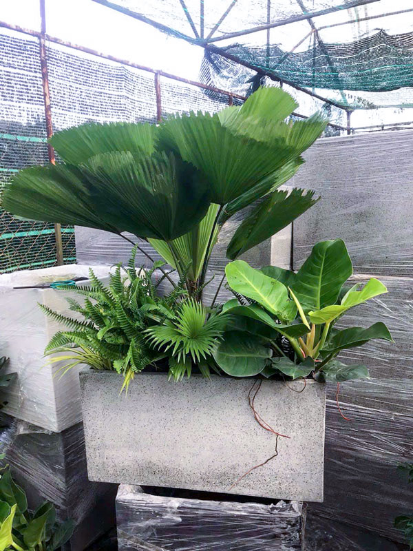 Chậu xi măng đá mài hình trụ vuông có nhiều kích thước đa dạng thích hợp với nhiều loại cây cảnh khác nhau, dạng thân cao hay bụi thấp đều phù hợp.