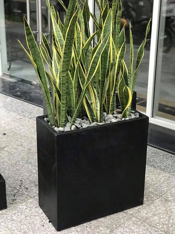 Chậu đá mài chữ nhật là loại chậu đang rất được ưa chuộng hiện nay. Chậu có nhiều kích thước và có 3 màu chủ đạo: màu đen, trắng và xám với bề mặt đá được mài nhẵn bóng giúp không gian trở nên sang trọng. Đáy chậu có lỗ thoát nước tránh tình trạng ngập úng rễ, gây hư hại cho cây trồng.