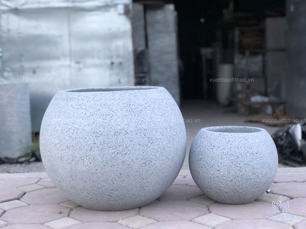 Chậu xi măng đá mài gáo dừa có hình tròn kết hợp với màu sắc từ xi măng được mài tạo nên các đường nét của đá. Nên mẫu chậu này được coi là mẫu chậu chuyên dùng để trồng cây trang trí tiểu cảnh, sân vườn, nội thất. Chậu tôn lên vẻ đẹp cây và làm không gian đặt thêm sang trọng.