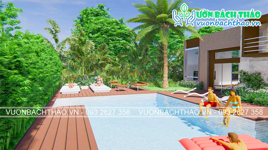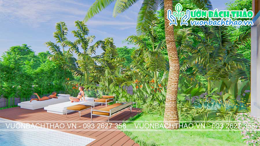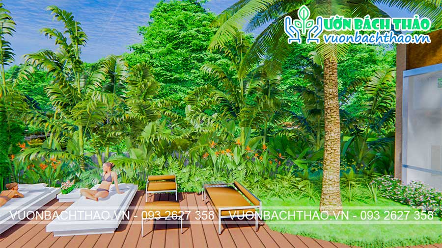 Thiết kế sân vườn biệt thự phong cách nhiệt đới