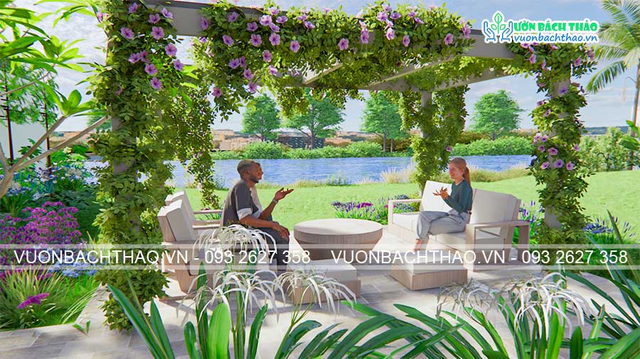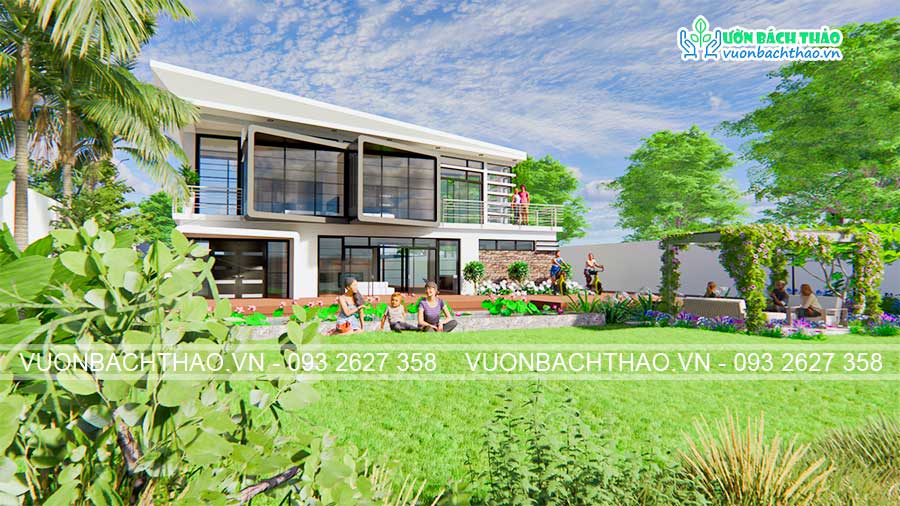 THIẾT KẾ THI CÔNG SÂN VƯỜN BIỆT THỰ VEN SÔNG