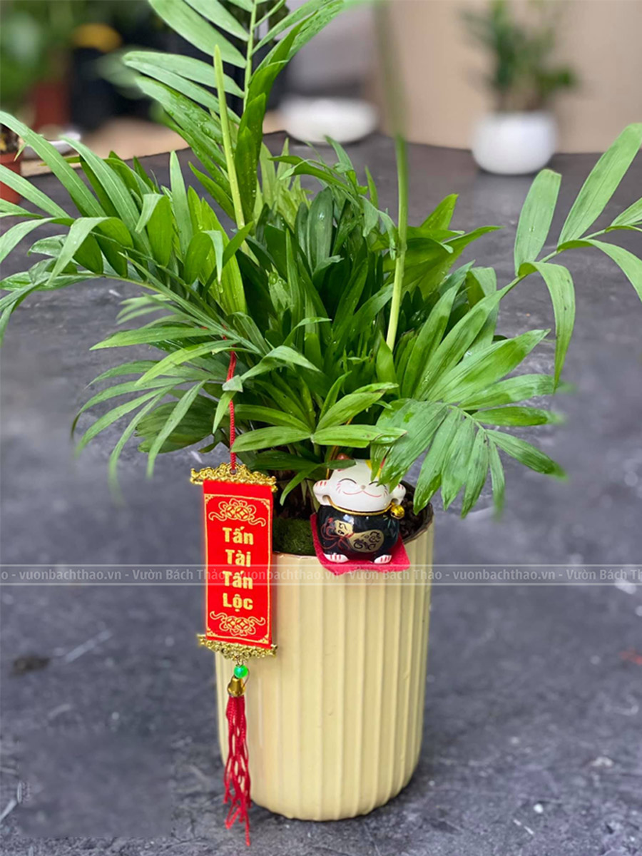 Cây cau tiểu trâm mang vẻ ngoài mãnh mai, trang nhã nhưng không kém phần sang giúp giảm mệt mỏi và căng thẳng.Theo phong thủy loài cây thể hiện ý chí phấn đấu vươn lên của con người. Cau tiểu trâm được coi là biểu tượng của sự may mắn bởi có thể trừ tà khí xua đuổi những vận khí xấu.