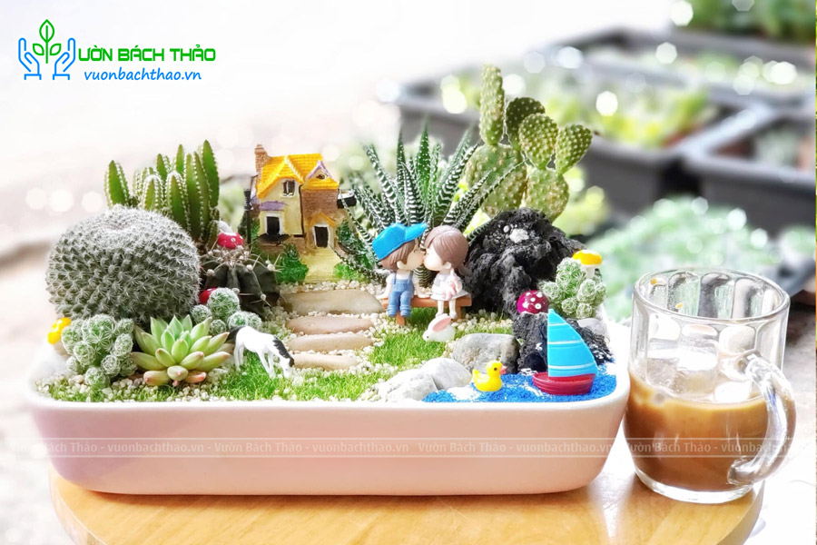 Tiểu cảnh sen đá xương rồng